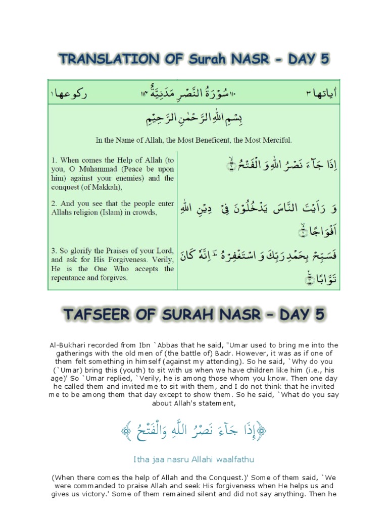 Tafsir Of Surah Nasr Pdf Islamic Texts Religious Faiths